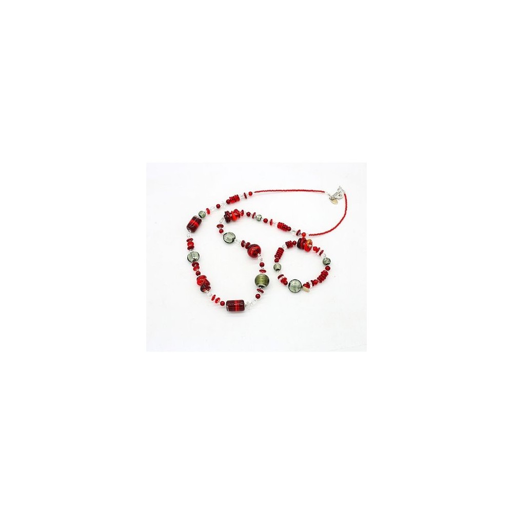 Handcrafted 2-piece Murano glass jewelry set (necklace and bracelet) accompanied by Millefiori certificate of authenticity and guarantee.