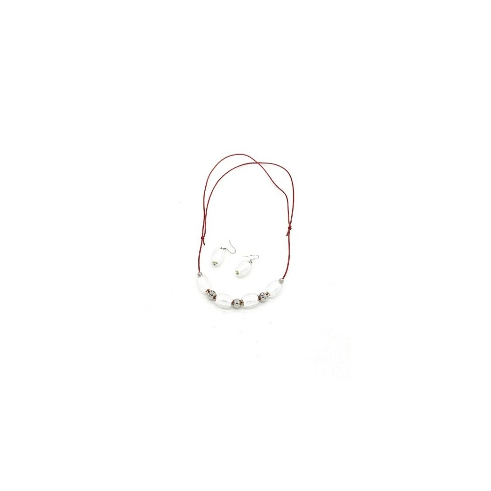 Handcrafted 2-piece Murano glass jewelry set (necklace and earrings) accompanied by Millefiori certificate of authenticity and guarantee.