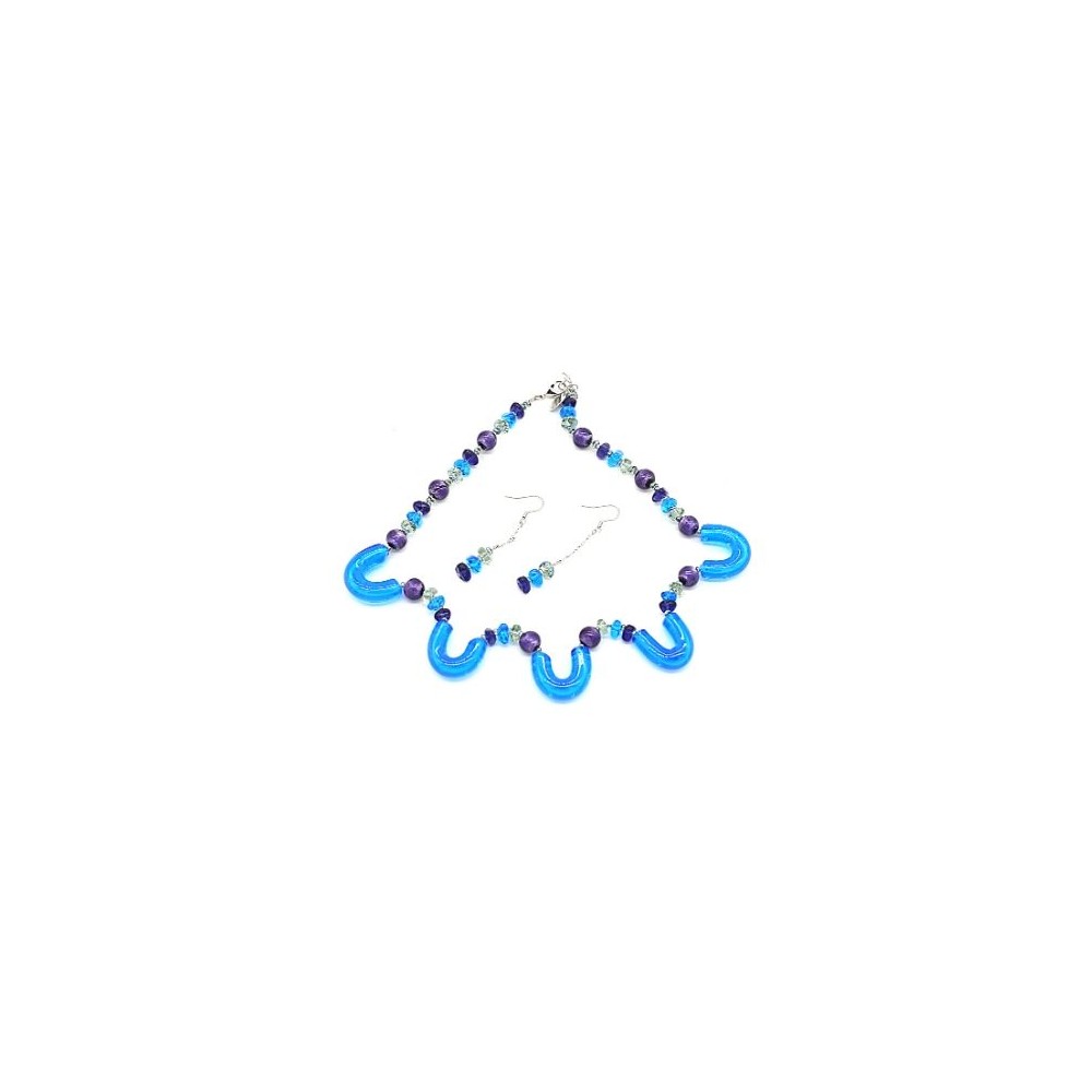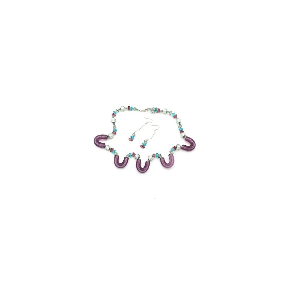 Handcrafted 2-piece Murano glass jewelry set (necklace and earrings) accompanied by Millefiori certificate of authenticity and guarantee.