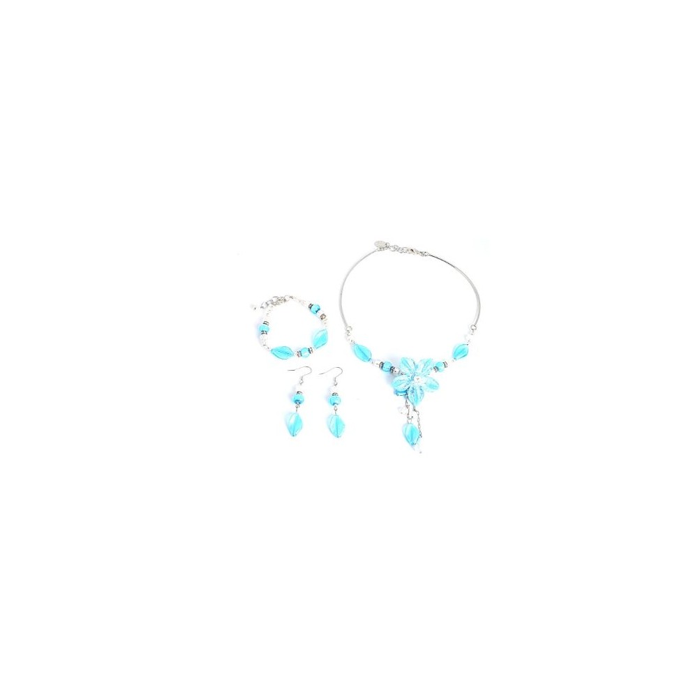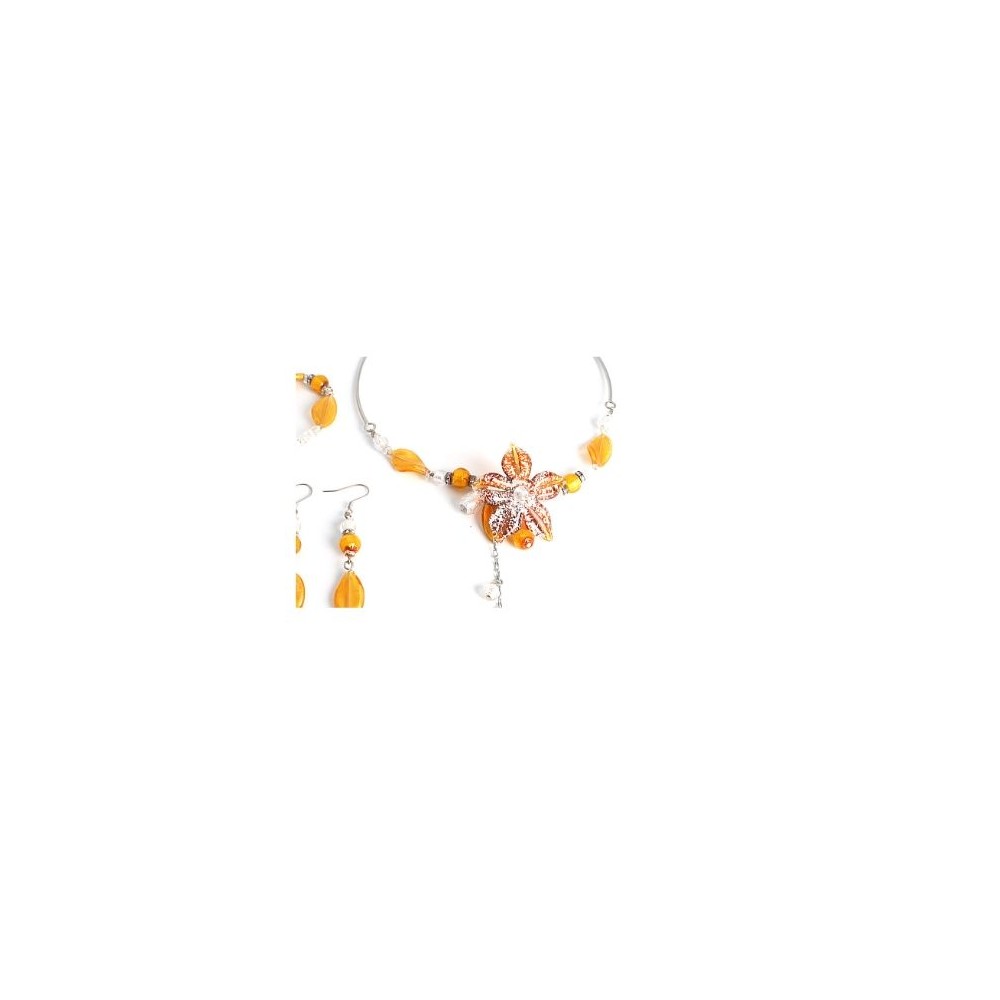 Handcrafted 3-piece Murano glass jewelry set (necklace, bracelet and earrings) accompanied by Millefiori certificate of authenticity and guarantee.