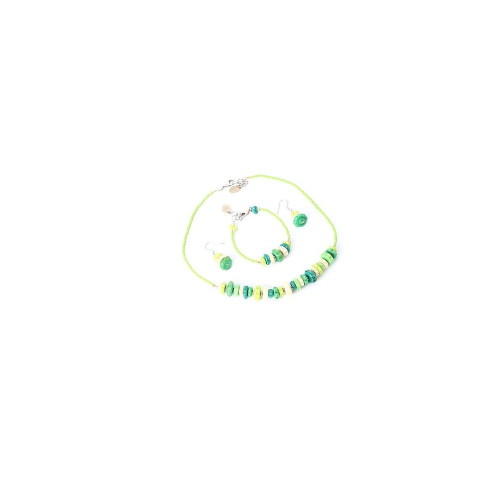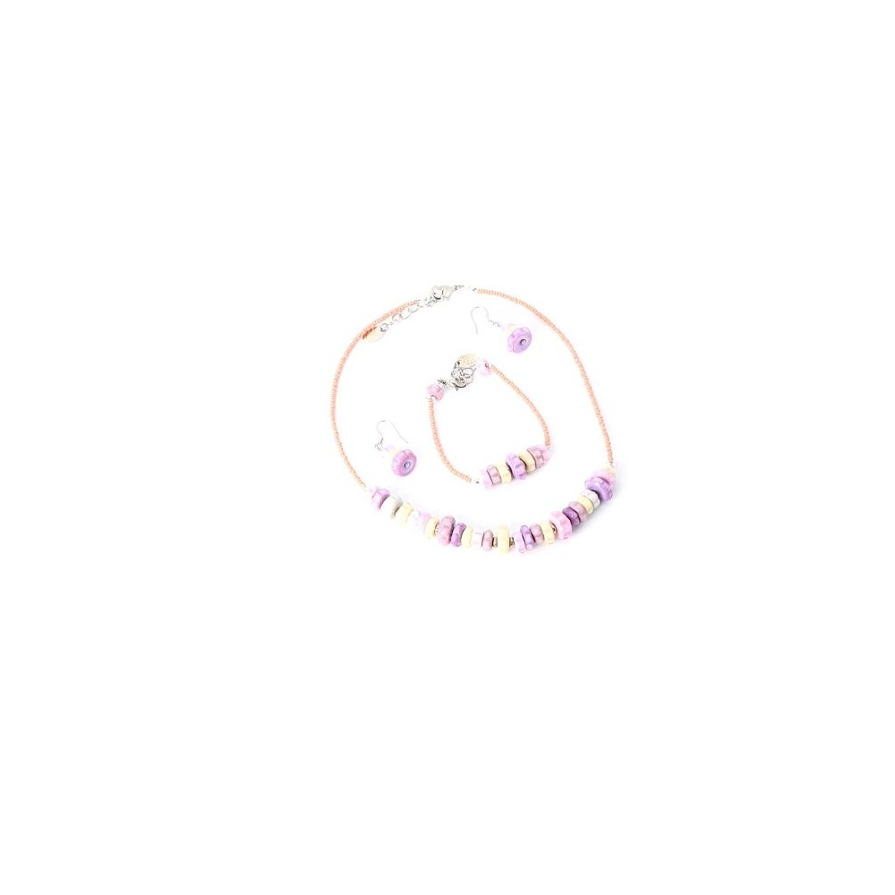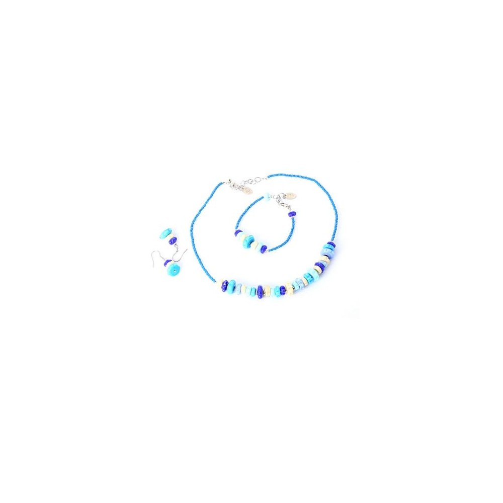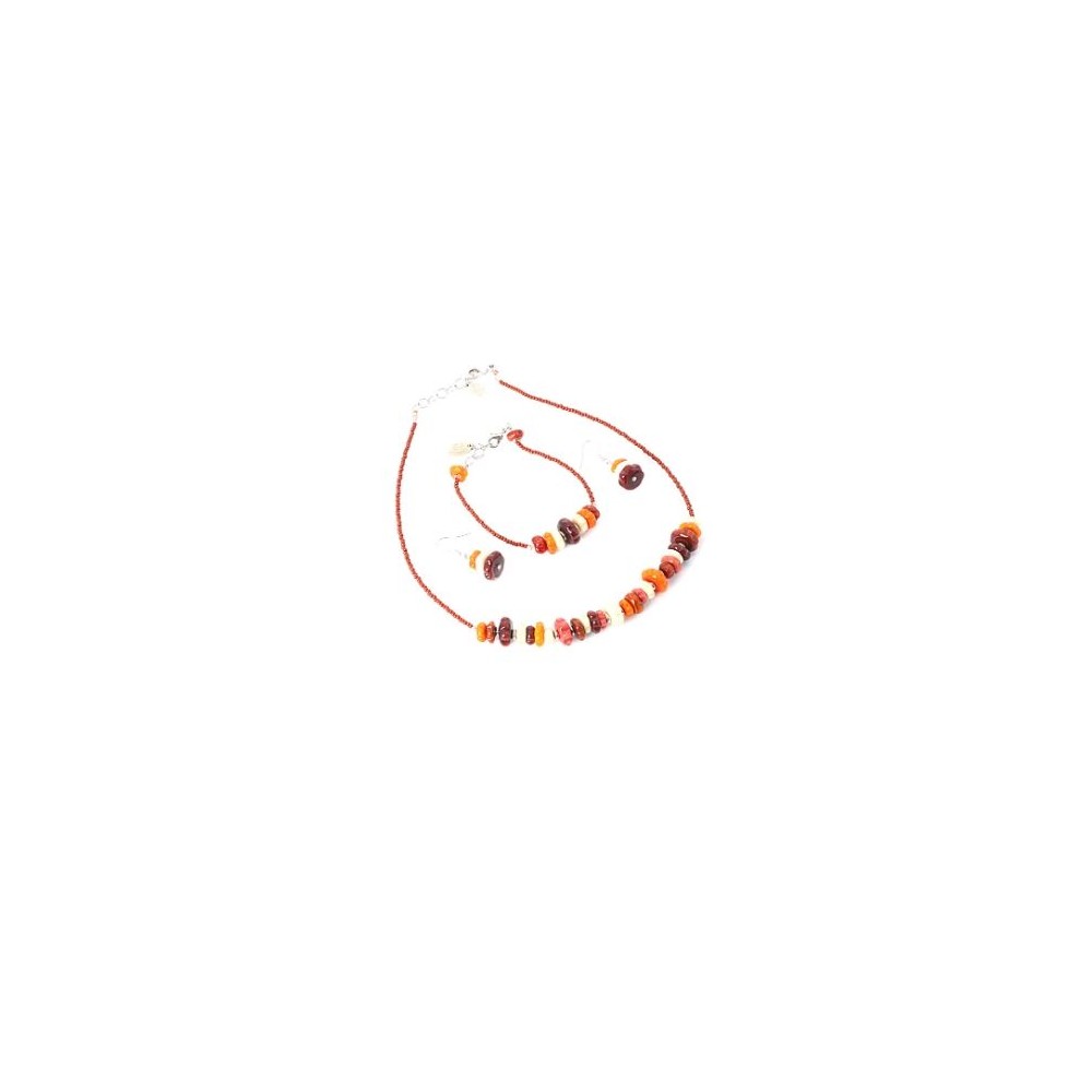 Handcrafted 3-piece Murano glass jewelry set (necklace, bracelet and earrings) accompanied by Millefiori certificate of authenticity and guarantee.