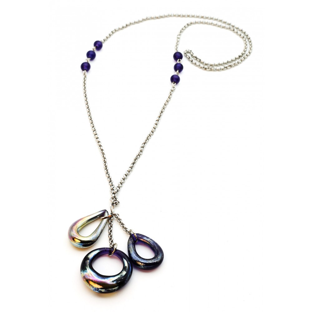 Colier prelucrat manual, din sticlă de Murano, însoțit de certificat de garanție și autenticitate.