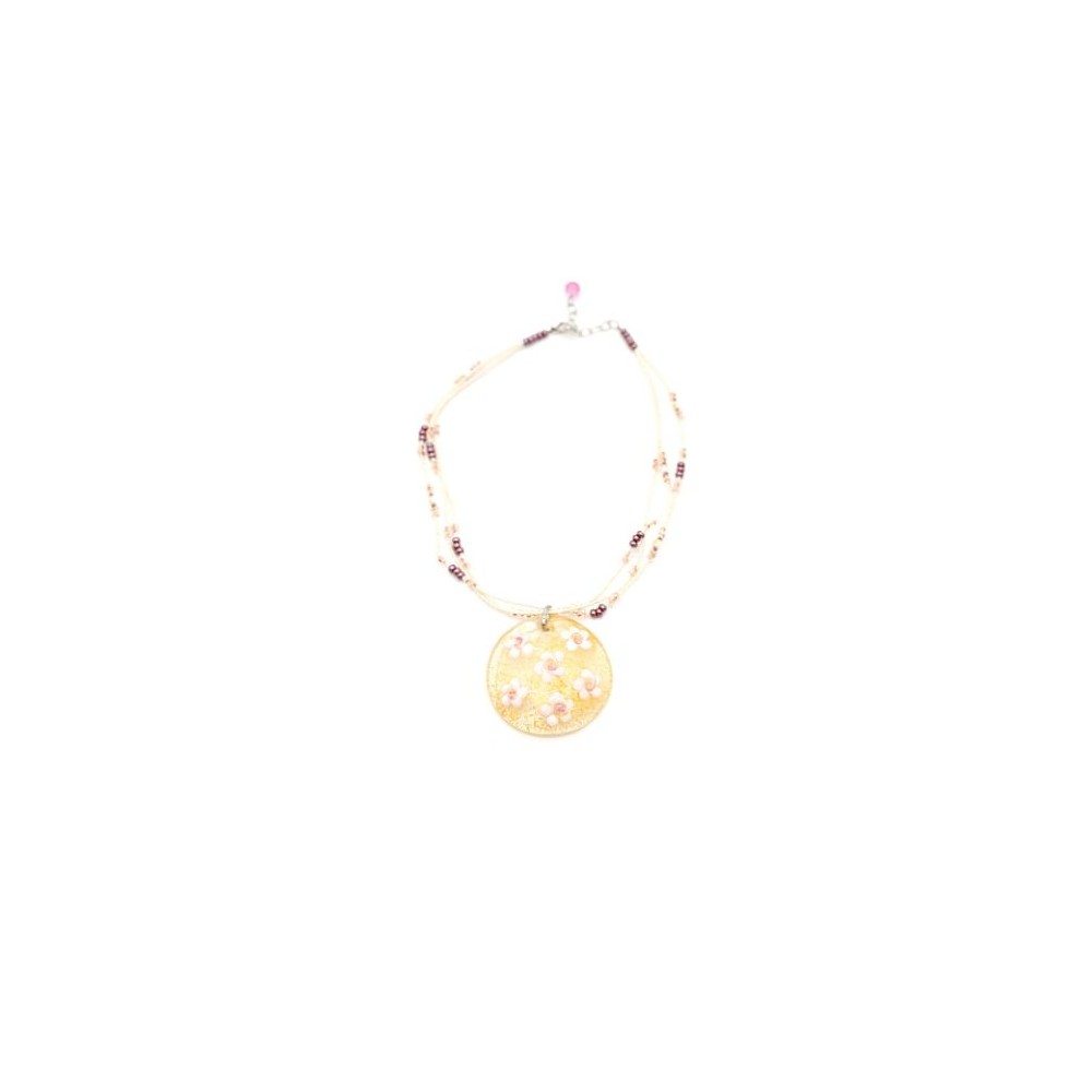 Colier prelucrat manual, din sticlă de Murano cu murrine delicate, însoțit de certificat de garanție și autenticitate Millefiori.Destinatar(i) :