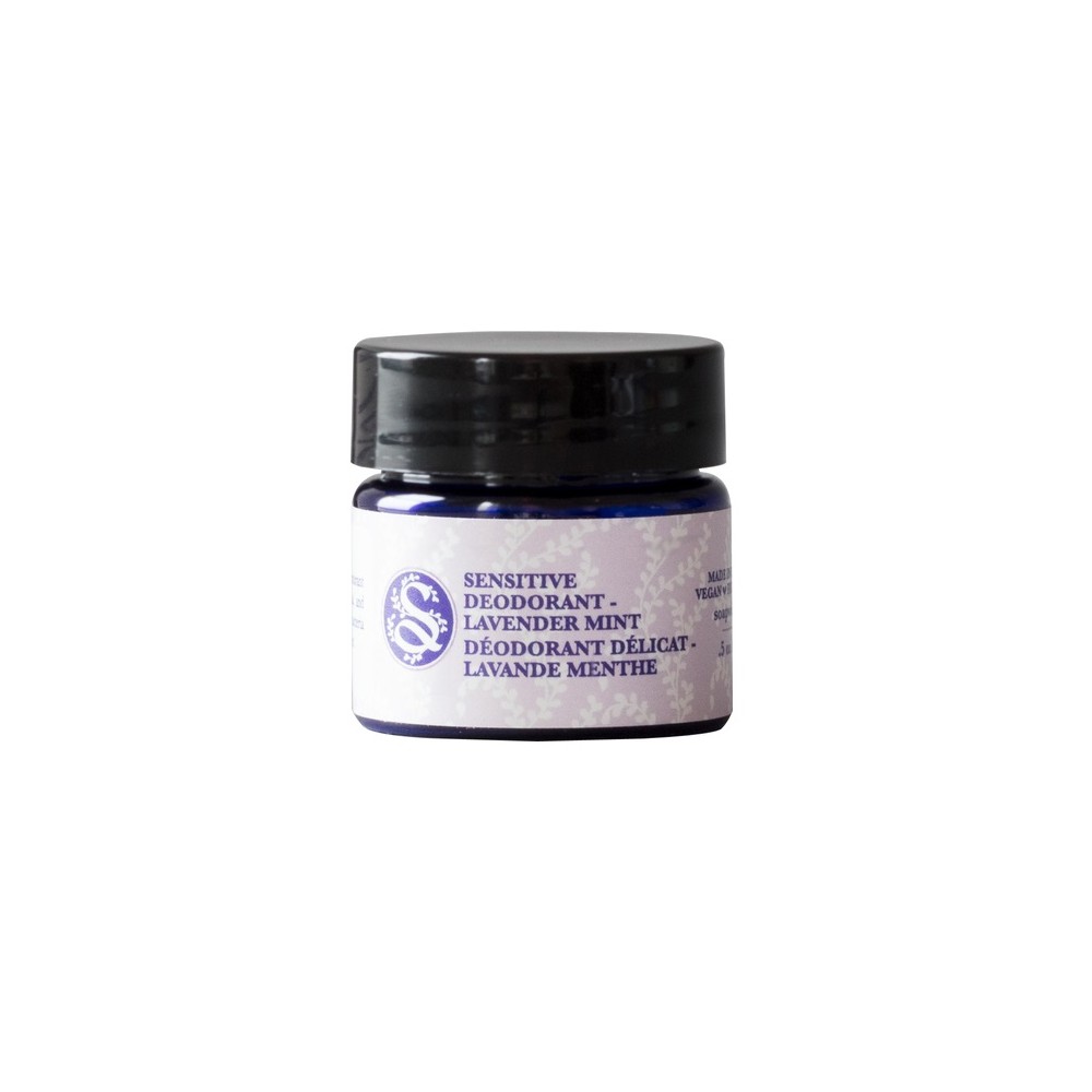Noua formula pentru piele foarte sensibila, care se irita usor, reprezinta o inovatie deosebita pe piata deodorantelor bio, prin care bicarbonatul de sodiu este inlocuit cu carbune activ. Deodorantul bio Sensitive Skin Lavender Mint are la baza o textura cremoasa cu unt de shea bio, care hidrateaza si protejeaza pielea, pudre vegetale fine, argila alba, extract de lycopodium pentru a retine transpiratia, carbune activ si uleiuri esentiale bio de lavanda, menta si arbore de ceai cu efect detoxifiant, antibacterian, care asigura prospetimea pe intreaga durata a zilei.