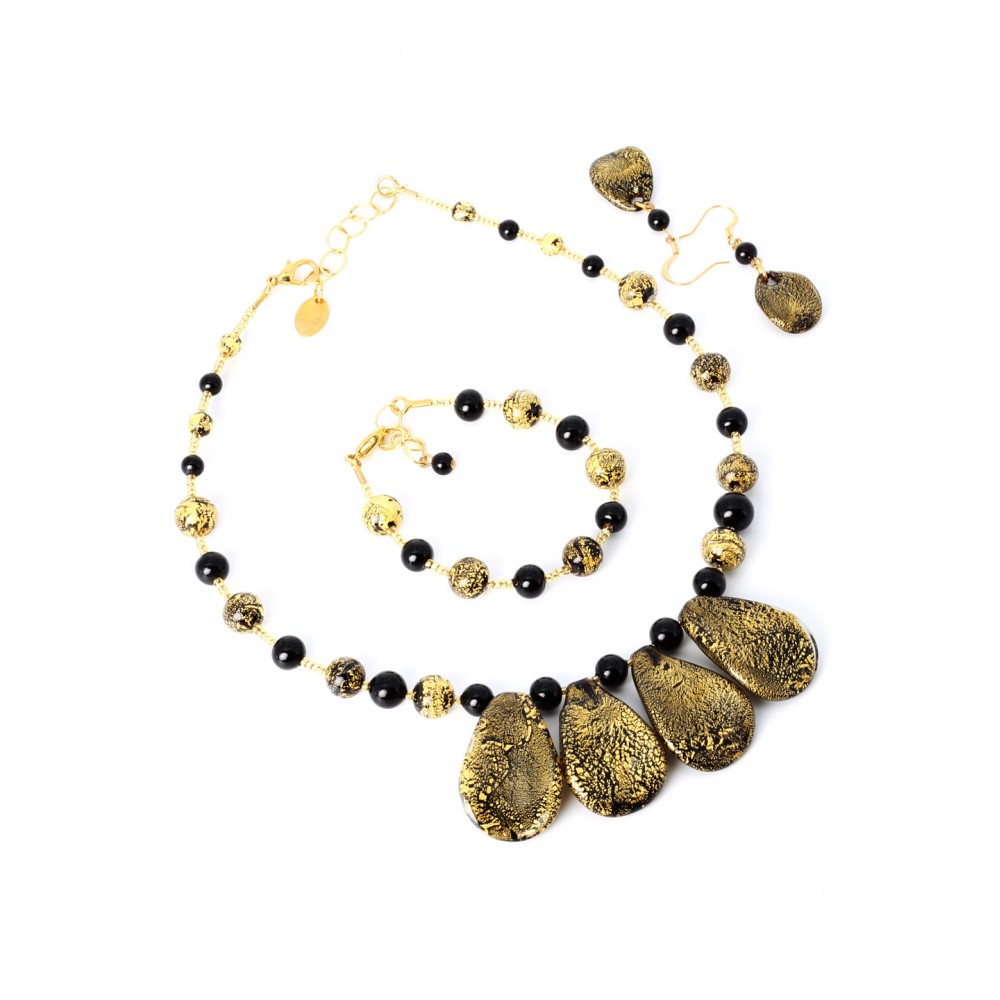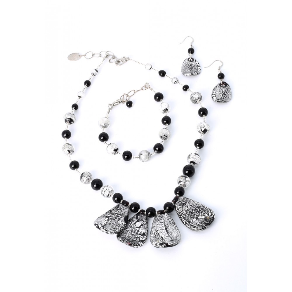 Set bijuterii cu 3 piese (colier, bratara si cercei) prelucrat manual, din sticlă de Murano, însoțit de certificat de garanție și autenticitate Millefiori.Destinatar(i) :